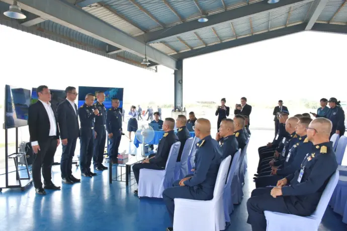 พลอากาศเอก เสกสรร คันธา ผู้บัญชาการทหารอากาศ เยี่ยมชมการทดสอบระบบสื่อสารผ่านดาวเทียม (SATCOM) กับอากาศยานไร้คนขับแบบ SIKAN
