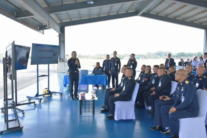 โดยมี พลอากาศโท ชเนนทร์ สุขวารี ผู้อำนวยการศูนย์วิจัยพัฒนาวิทยาศาสตร์เทคโนโลยีการบินและอวกาศกองทัพอากาศ พร้อมด้วยคณะผู้บังคับบัญชา ให้การต้อนรับและบรรยายสรุป