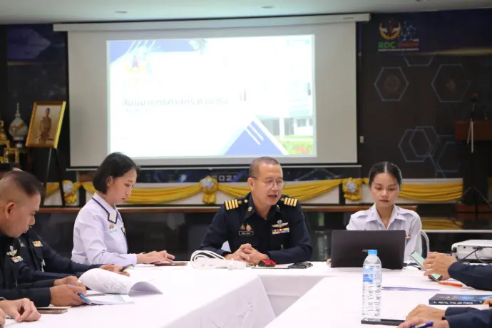 พลอากาศโท ชเนนทร์ สุขวารี ผู้อำนวยการศูนย์วิจัยพัฒนาวิทยาศาสตร์เทคโนโลยีการบินและอวกาศกองทัพอากาศ เป็นประธานในการสัมมนายุทธศาสตร์ ก.พ.ร.ศวอ.ทอ.