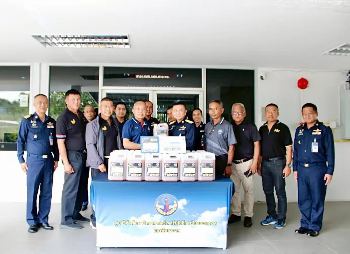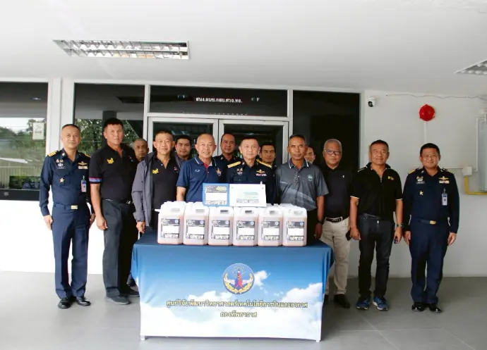 พลอากาศเอก ชาตินนท์ สท้านไผท ประธาน คณอก.บริหารสนามกอล์ฟ กองทัพอากาศดอนเมือง และคณะผู้บริหารฯ รับมอบน้ำหมักชีวภาพ EM (Effective Microorganisms)