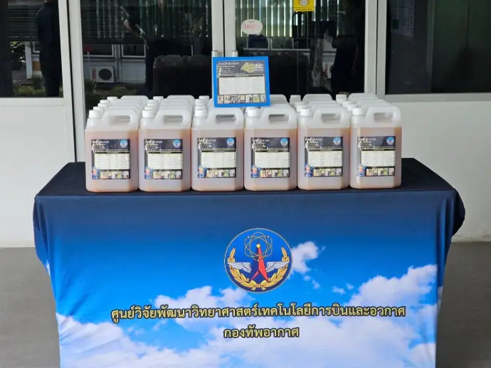 ซึ่งเป็นผลงานวิจัยของศูนย์วิจัยพัฒนาวิทยาศาสตร์เทคโนโลยีการบินและอวกาศกองทัพอากาศ จำนวน ๑๕๐ ลิตร สนับสนุน คณอก.บริหารสนามกอล์ฟกองทัพอากาศดอนเมือง