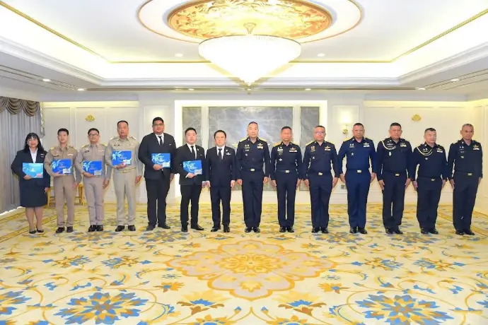 พร้อมด้วยคณะทำงานฯ ในโอกาสเข้าพบ เพื่อส่งมอบ "ระบบควบคุมการจราจรทางอากาศของอากาศยานไร้คนขับ (UTM)" ให้แก่กองทัพอากาศ เพื่อยกระดับเทคโนโลยีการบินและขยายผลสู่ระดับประเทศ
