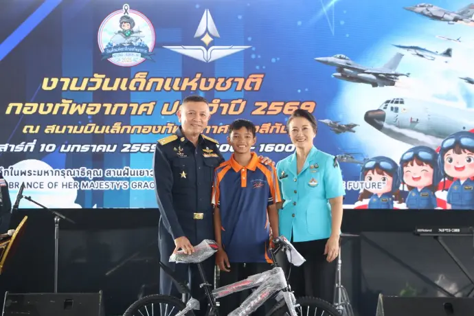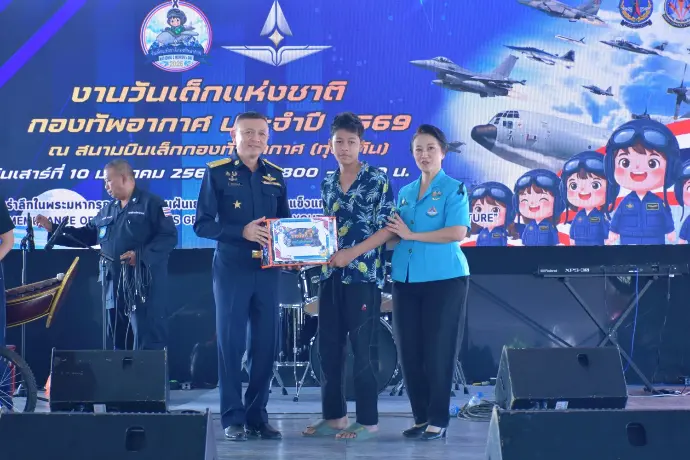 พลอากาศโท ชเนนทร์ สุขวารี ผู้อำนวยการศูนย์วิจัยพัฒนาวิทยาศาสตร์เทคโนโลยีการบินและอวกาศกองทัพอากาศ เป็นประธานในพิธีมอบรางวัลการแสดงและการแข่งขันกิจกรรมงานวันเด็กแห่งชาติ ประจำปี 2569 ณ สนามบินเล็กกองทัพอากาศ (ทุ่งสีกัน) พร้อมด้วย คุณณัฏฐพร สุขวารี ประธานชมรมคู่สมรสทหารอากาศ ศวอ.ทอ.,
