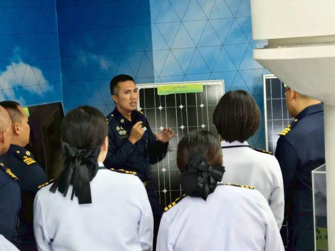โดยมี นาวาอากาศเอก สัญญา แสนทวี นักวิทยาศาสตร์ กองวิทยาศาสตร์ ฯ และเจ้าหน้าที่คณะทำงานศูนย์การเรียนรู้พลังงานทดแทนกองทัพอากาศ กองวิทยาศาสตร์ ศวอ.ทอ.ให้การต้อนรับ