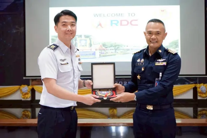 นาวาอากาศเอก รณชิต วิจิตร รองผู้อำนวยการสำนักงานวิจัย ศูนย์วิจัยพัฒนาวิทยาศาสตร์เทคโนโลยีการบินและอวกาศกองทัพอากาศ ผู้แทน ผู้อำนวยการศูนย์วิจัยพัฒนาวิทยาศาสตร์เทคโนโลยีการบินและอวกาศกองทัพอากาศ ให้การต้อนรับ LTC Pee Jun Yong Commander of 149 SQN และคณะการบินเดินทางเยือนกองทัพอากาศไทย (Goodwill visit) ของนักบินและเจ้าหน้าที่สนับสนุนการบินกองทัพอากาศสิงคโปร์ เข้าเยี่ยมชมกิจการและรับฟังการบรรยายสรุปการดำเนินงานของหน่วยงานศูนย์วิจัยพัฒนาวิทยาศาสตร์เทคโนโลยีการบินและอวกาศกองทัพอากาศในการนี้ คณะกองทัพอากาศสิงคโปร์ได้ร่วมเข้าชมนิทรรศการผลงานวิจัยที่ได้นำมาจัดแสดงด้านการบรรเทาสาธารณภัยของกองทัพอากาศ และอากาศยานไร้คนขับ