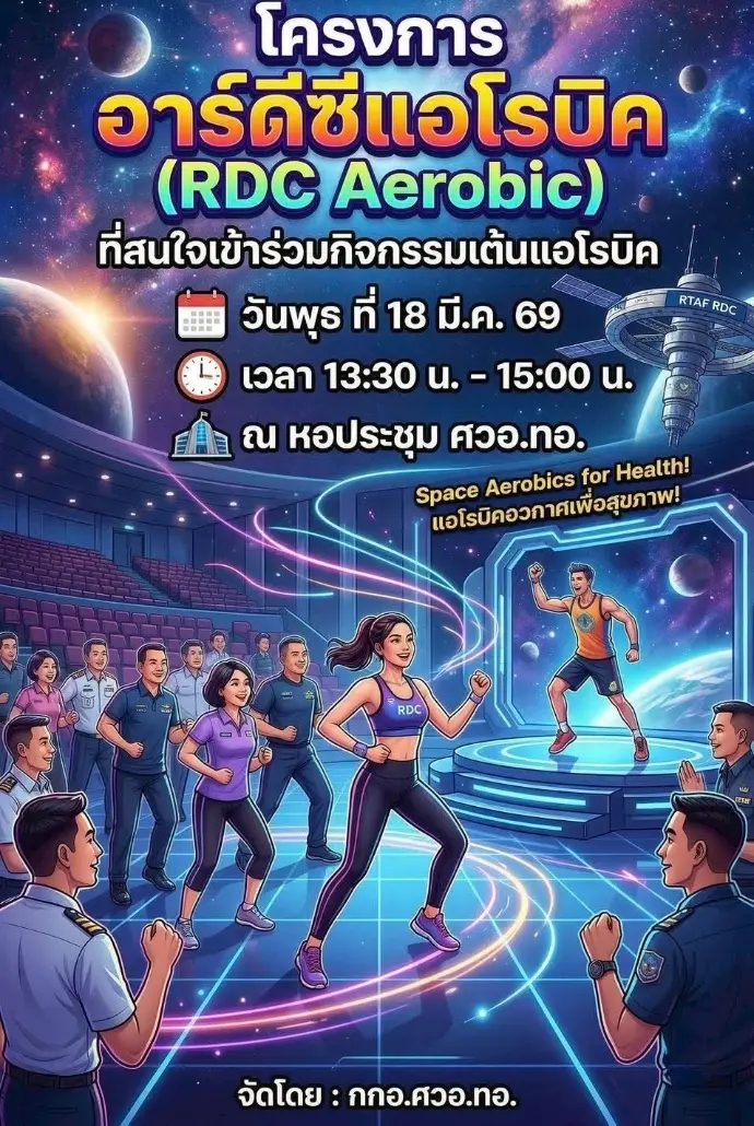 ศวอ.ทอ. จัดกิจกรรม “RDC AEROBIC” ส่งเสริมสุขภาพกำลังพล ประจำปี 2569