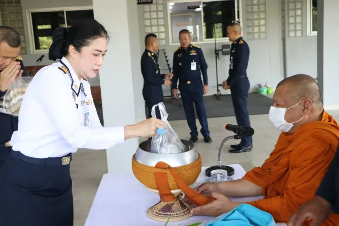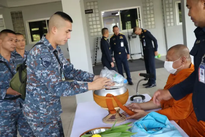 ศวอ.ทอ.จัดกิจกรรมวันจันทร์สุขใจ ใส่บาตร ฟังธรรม (โครงการ 4 สุข : กิจกรรมสุขจิต)
