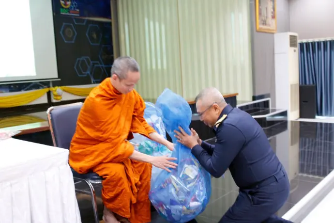 เรื่อง กำลังพล ศวอ.ทอ.ตระหนักรักษ์สิ่งแวดล้อม ซึ่งมีกิจกรรมการบรรยายเรื่อง "พุทโธ Zero Waste วัดไทยไร้ขยะ" โดยพระครูธรรมธรอานนท์ กันตวีโร ผู้ช่วยเจ้าอาวาสวัดทอง ถ่ายทอดแนวความคิดการจัดการขยะเพื่อปลูกจิตสำนึกด้านการใช้ทรัพยากรอย่างรู้คุณค่าและลดการสร้างขยะในชีวิตประจำวัน แ