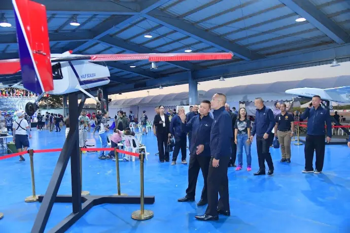 พลอากาศโท ชเนนทร์ สุขวารี ผู้อำนวยการศูนย์วิจัยพัฒนาวิทยาศาสตร์เทคโนโลยีการบินและอวกาศกองทัพอากาศ/ประธานอนุกรรมการสนามบินเล็กกองทัพอากาศ ร่วมกับคณะกรรมการจัดงาน